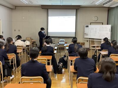 令和7年3月18日(火)16時から、本校第2教育相談室にて、高女イグナイト「国際化雑談会第4弾」が行われた。今回は、フランスに留学し、大学、大学院で造形芸術を学ばれ、フランスの造形芸術国家資格(最優秀賞)並びに上級造形表現フランス国家資格を取得された鈴木希(のぞみ)さんが講師。この日、参加した生徒は5名。芸術やフランス語に関心がある生徒で、鈴木さんの話を真剣に聞き入っていた。また、鈴木さんのご息女(今度高女にご入学予定!)もお母様のこのような話は聞いたことがないので、聞きたいとのご希望から同席参加した。