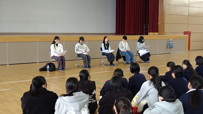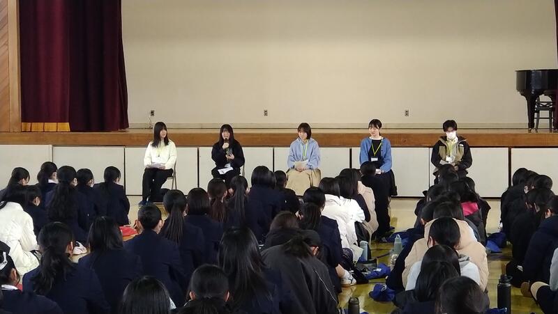 今回の先輩方のお話は、受験の厳しさだけでなく、それをみんなで乗り越えた達成感も感じられました。高女の伝統をこれからも1・2年生が受け継いで、勉強や部活、学校行事、探究など様々なことにがんばっていきたいと思います。