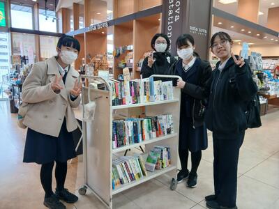3月26日(木)、図書委員の代表生徒4名が書店を訪れ、本校図書館に新たに配架してほしい図書の選書を行いました。事前に図書委員をはじめ全校のみなさんを対象として、読んでみたい本や図書館に置いてほしい本についてアンケートを実施していましたが、実際に書店で本を手に取ることで、新たな興味関心が広がり、当初の候補以外にも多くの魅力的な書籍と出会うことができました。